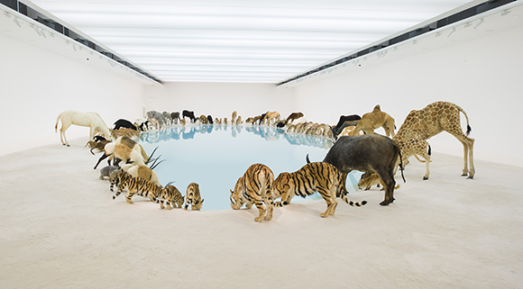 The first single artwork to take up the entire 1,100m2 of GOMA’s largest gallery space, Heritage presents animals drinking from a lake filled with 170 tonnes of water, which is viewable from a walkway that circles the entire installation.